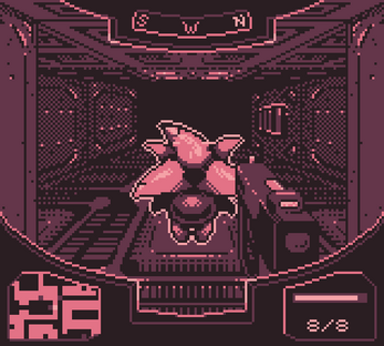 space threnody is a first person shooter adventure with atmospheric sci-fi horror sensibilities and sprite-based 3D environments that push portable 8-bit hardware to its limits.